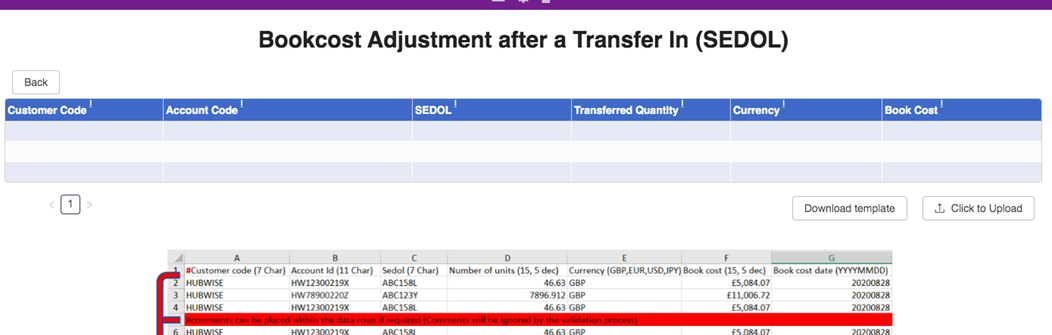 Next, select the “validate” button. this will validate both syntax and the existence of the account, instrument and currency. Where an error arises, the record is highlighted and hovering over the error gives an explanation as to the issue.