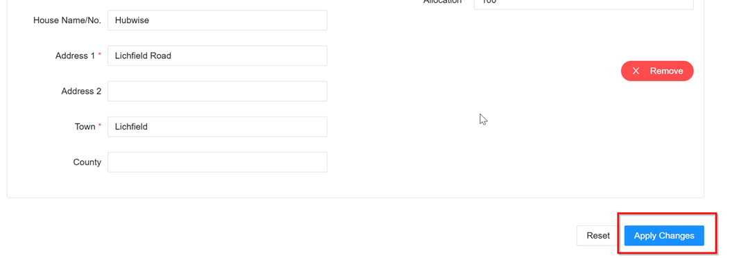 You must end up with 100% Allocation for the system to allow and apply the changes: